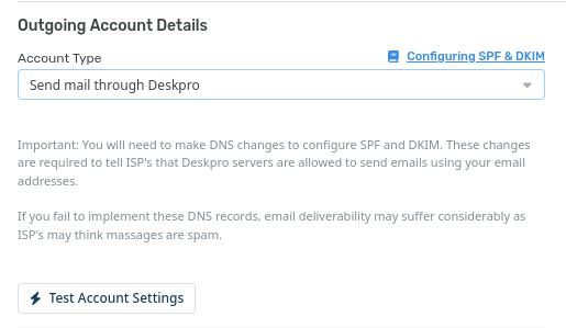 This guide is intended for Deskpro Cloud users who want to use custom email addresses at their own domain (such as example@yourdomain.com), but still want Deskpro to handle all outgoing email.