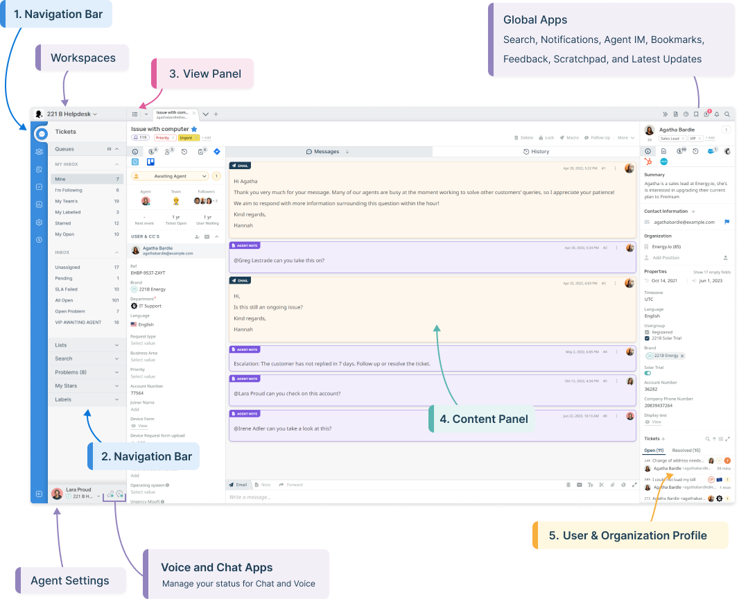 Here's a screenshot outlining some of the key updates to the agent interface: