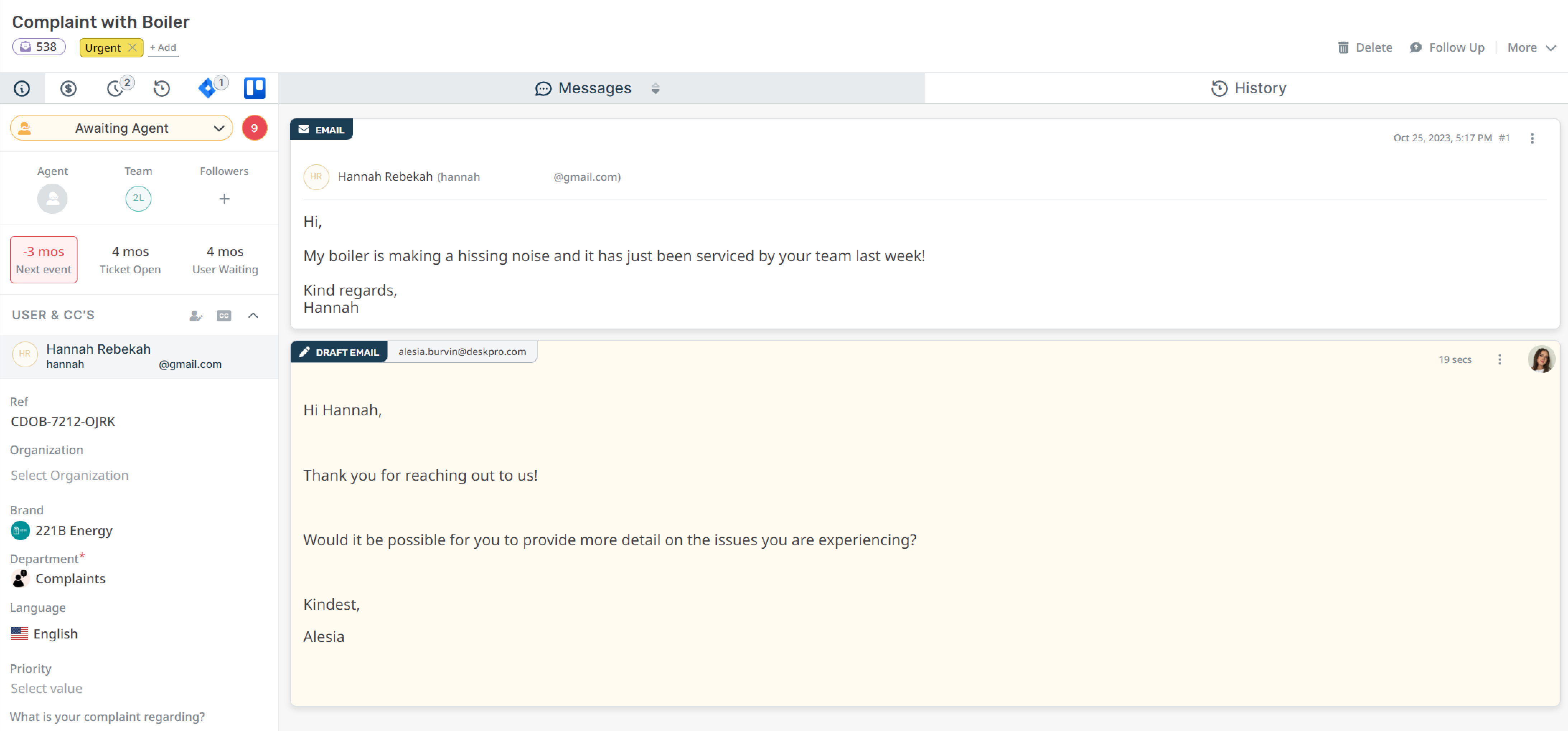 Drafts help make it clear when another Agent is already responding to a query which can prevent other Agents from working on the issue if someone else is already handling it.