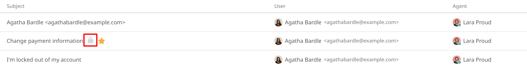 While a Ticket is locked it will display a banner and lock icon to other Agents so they know that it is locked from action for them.